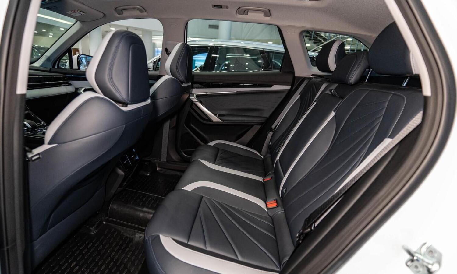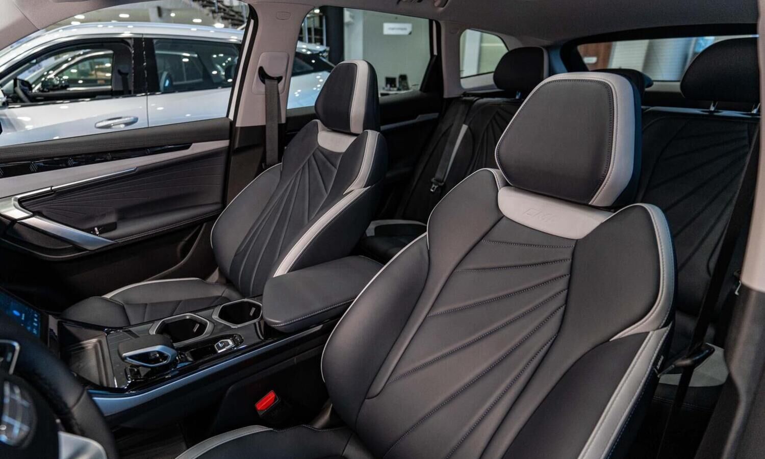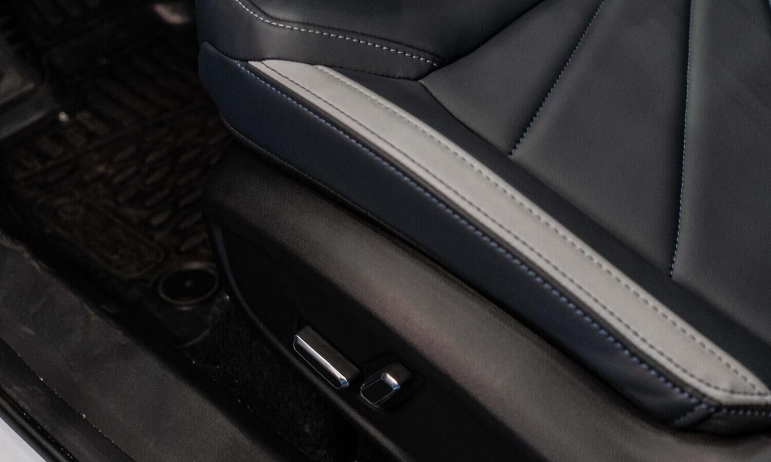 • Отделка интерьера и сидений тёмно-серой экокожей со светлыми вставками