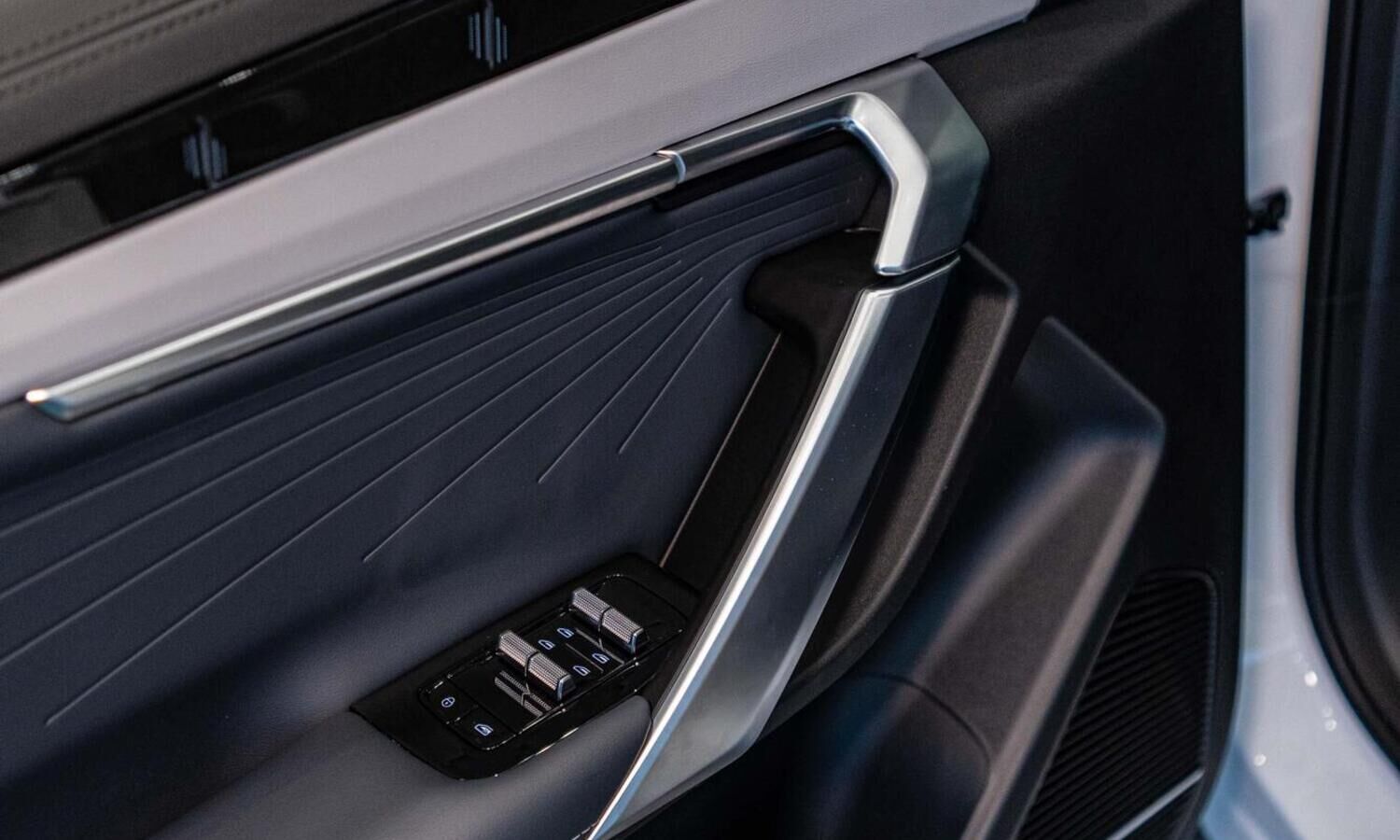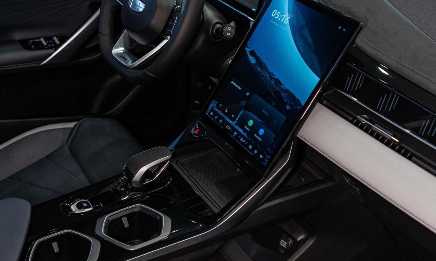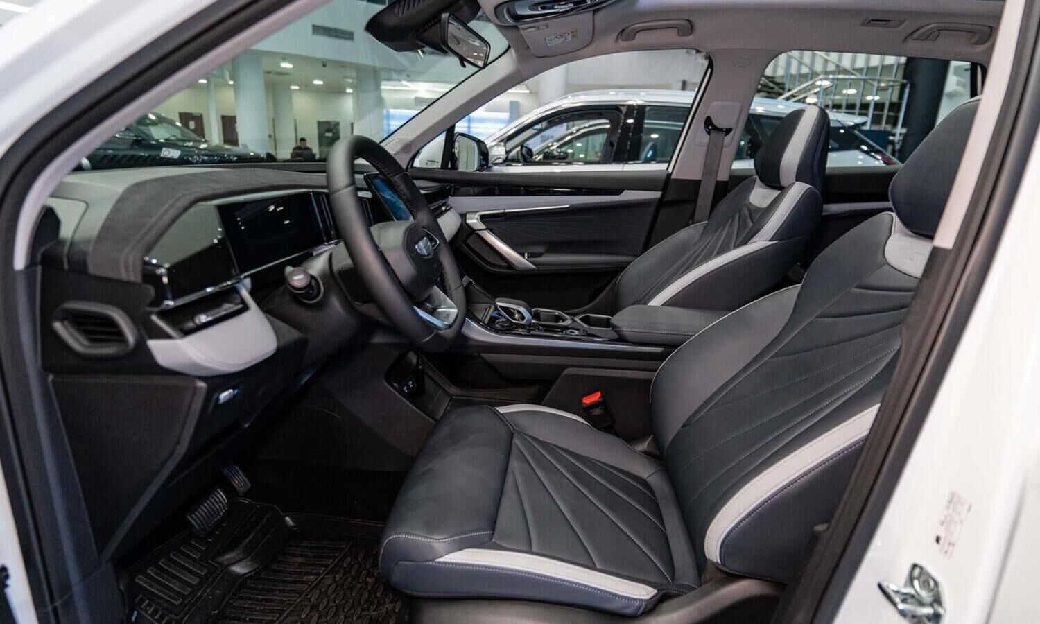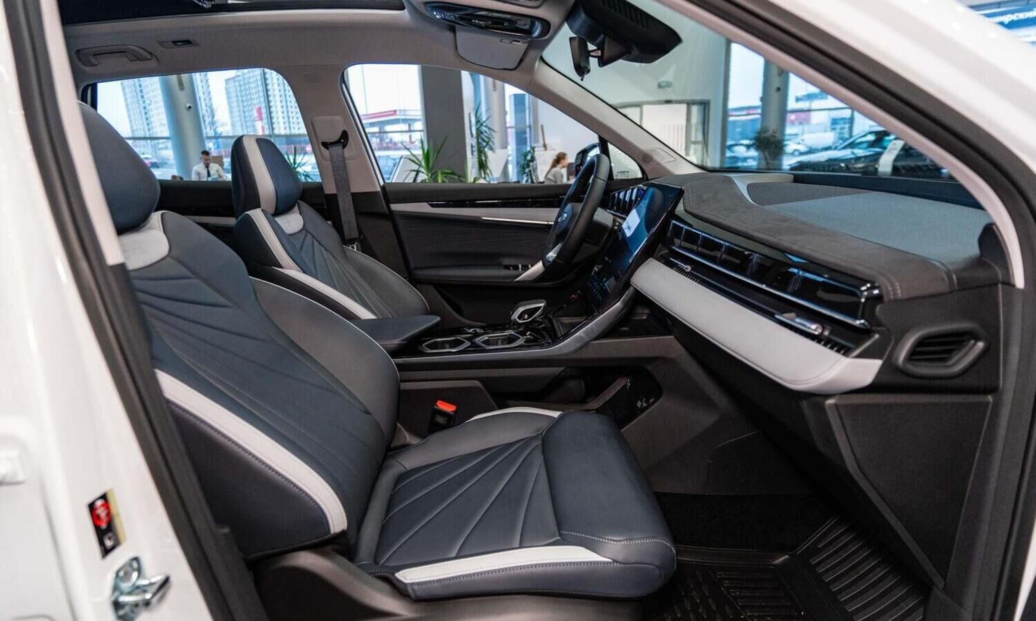 • Отделка интерьера и сидений тёмно-серой экокожей со светлыми вставками