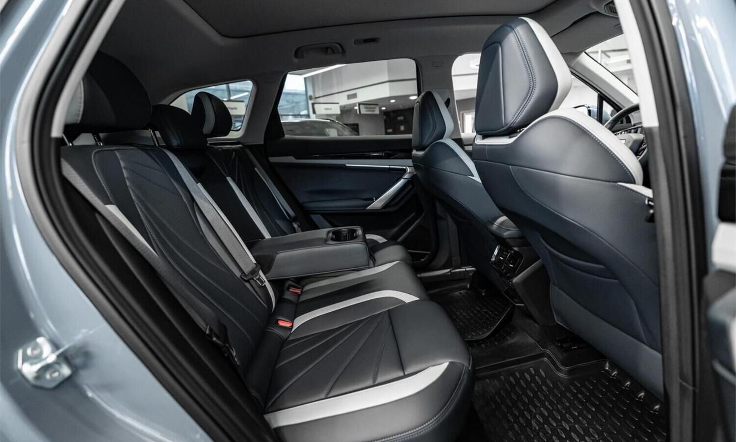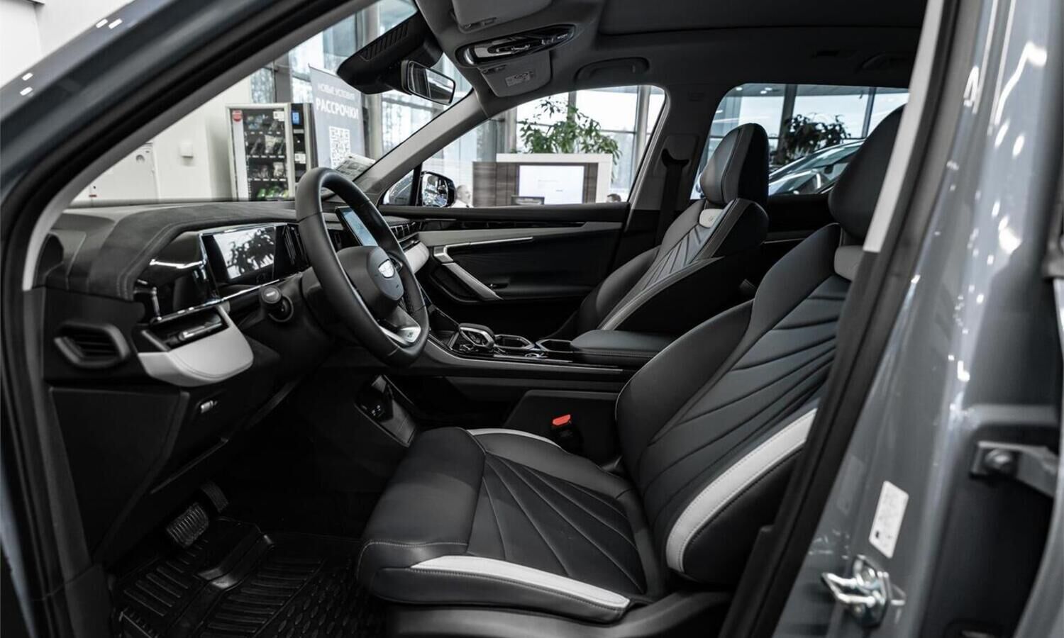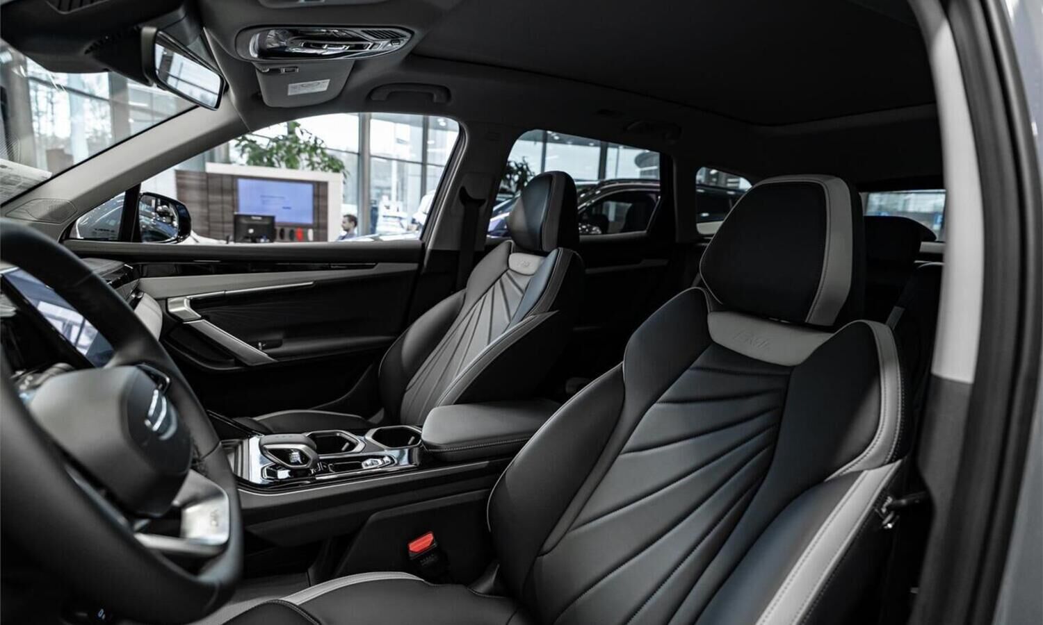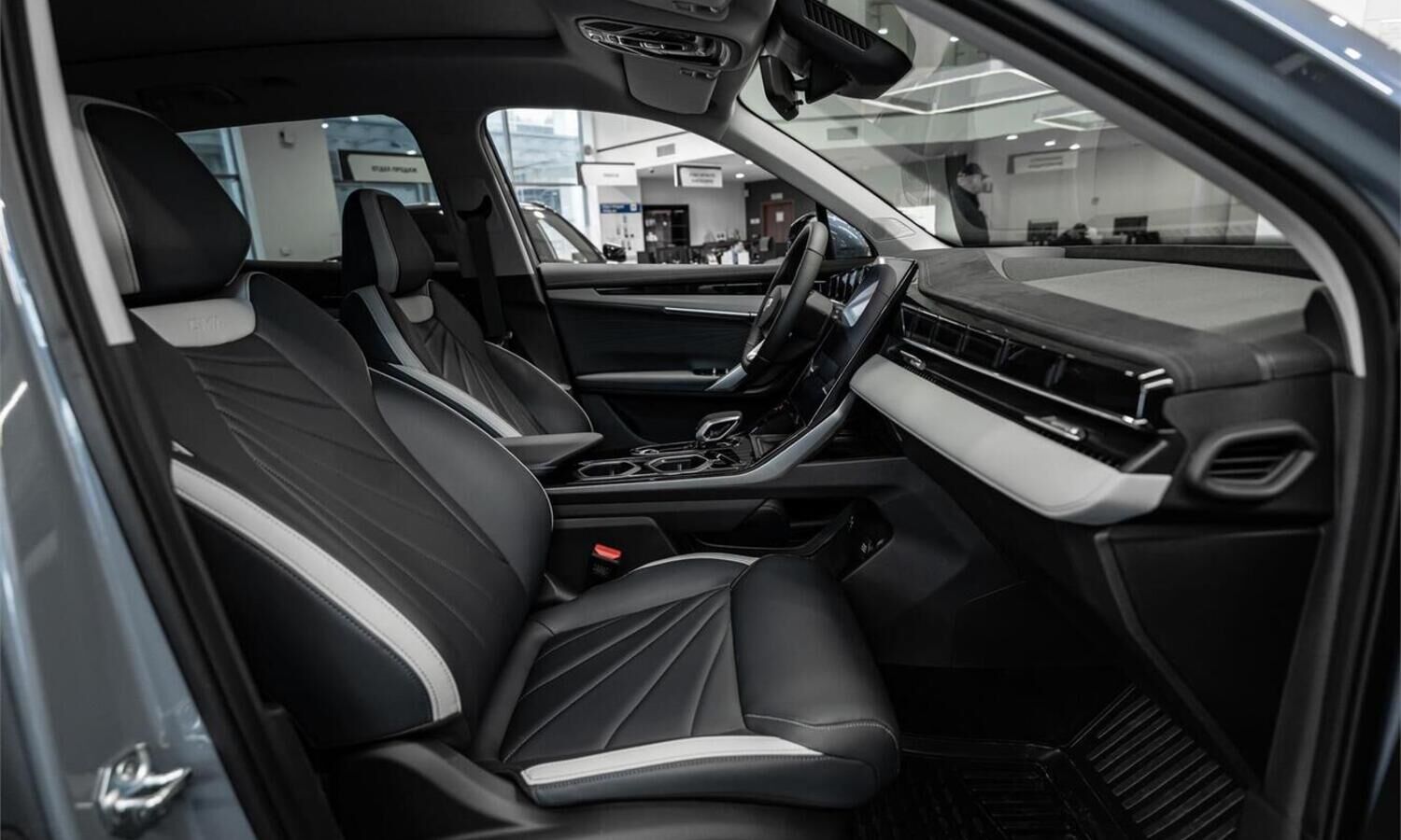 • Отделка интерьера и сидений тёмно-серой экокожей со светлыми вставками