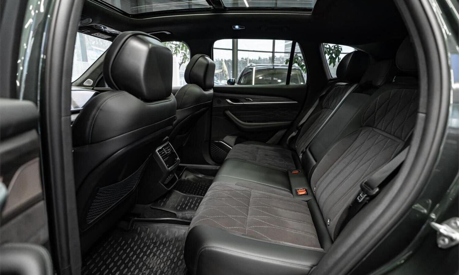 • Отделка интерьера и сидений черной кожей и замшей с ромбовидной прострочкой